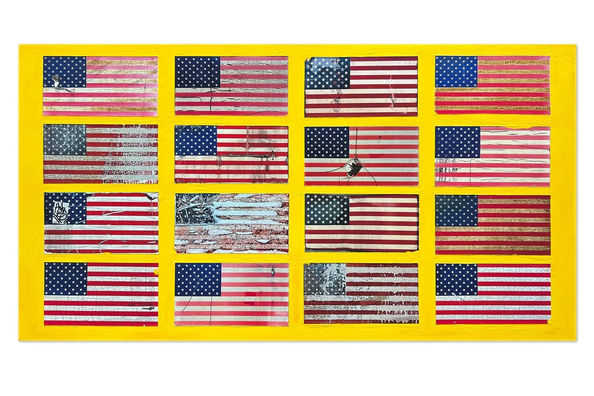 I was struck by the disfigured American flags on the New York City subway train cars, and how they mirror the social fabric of the USA today.