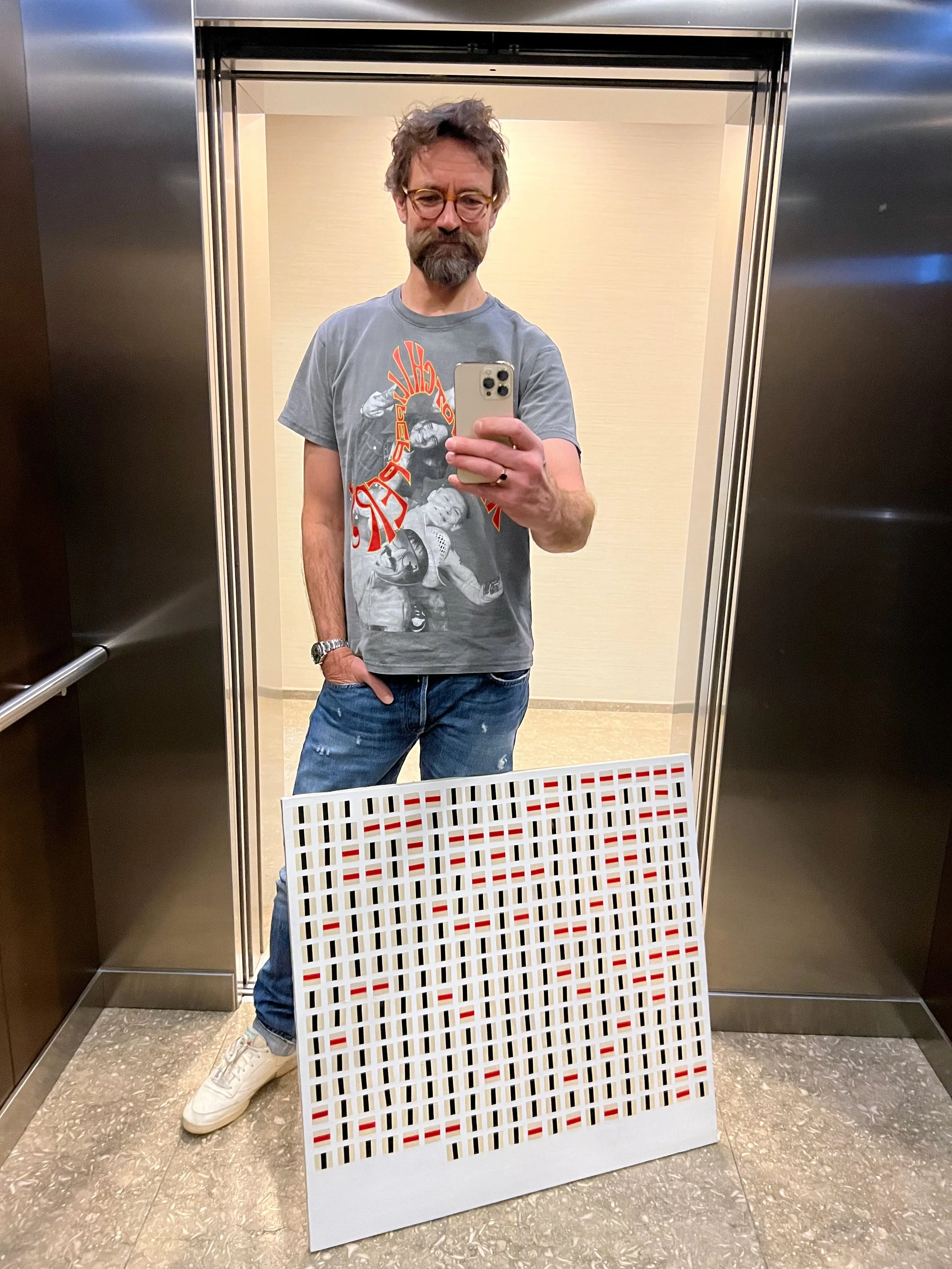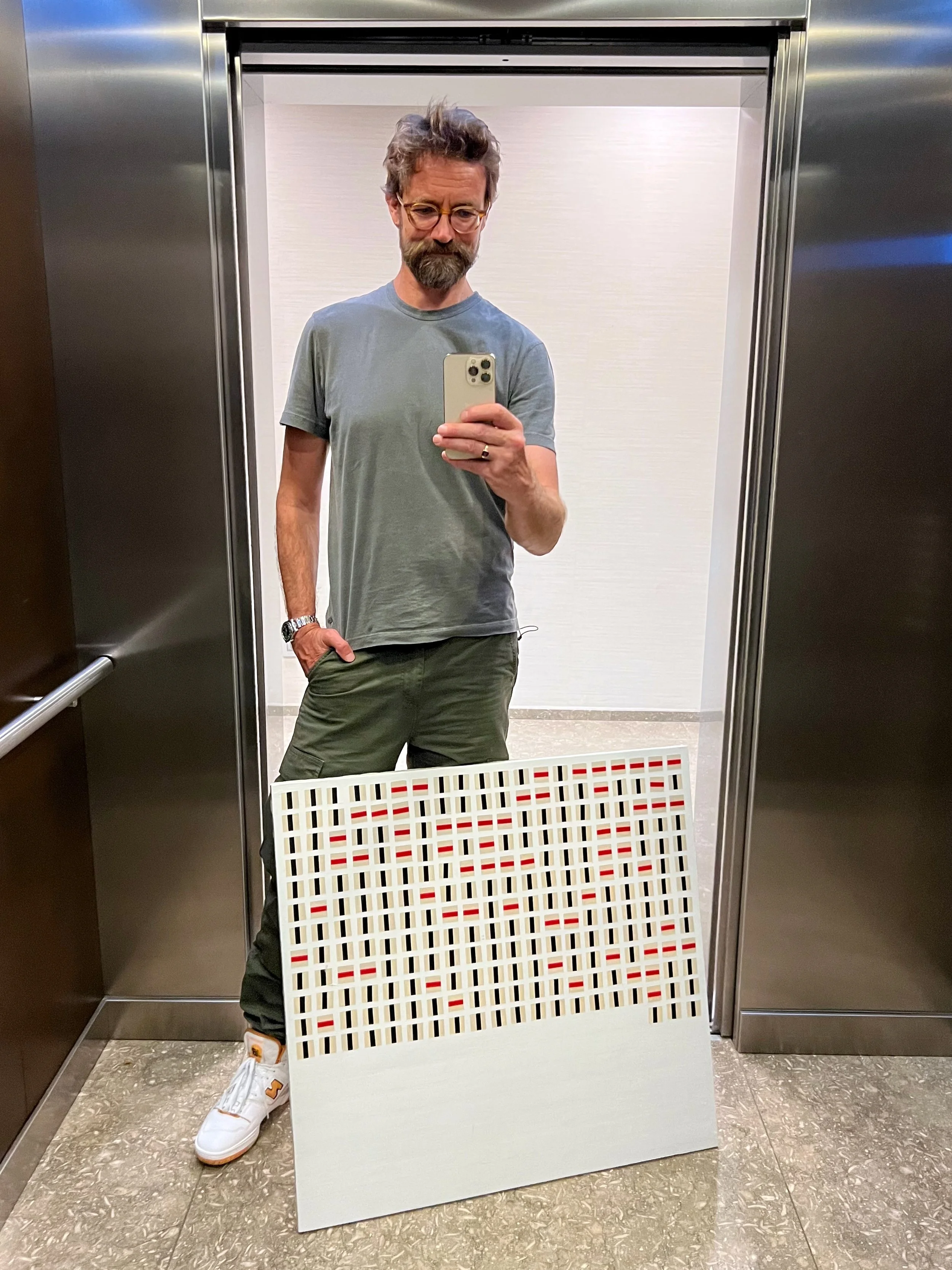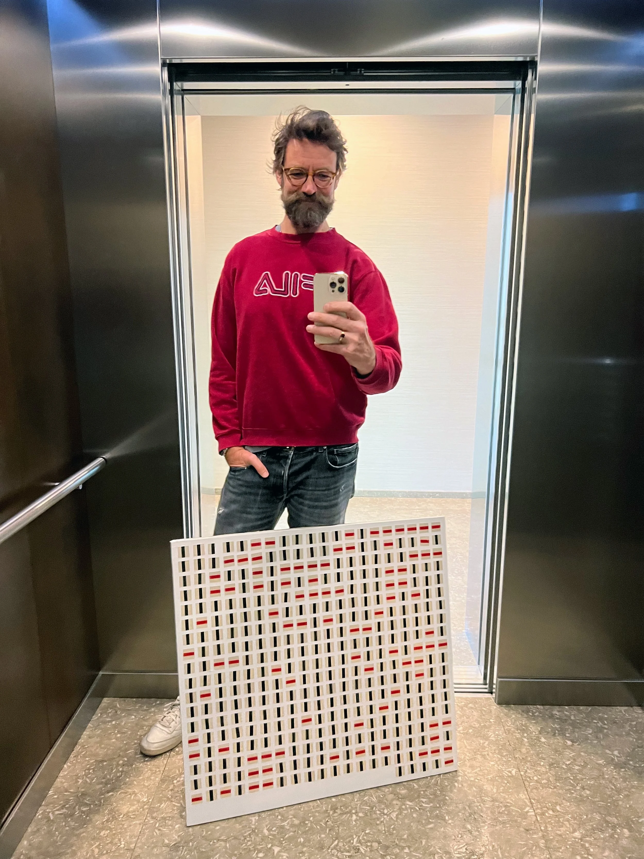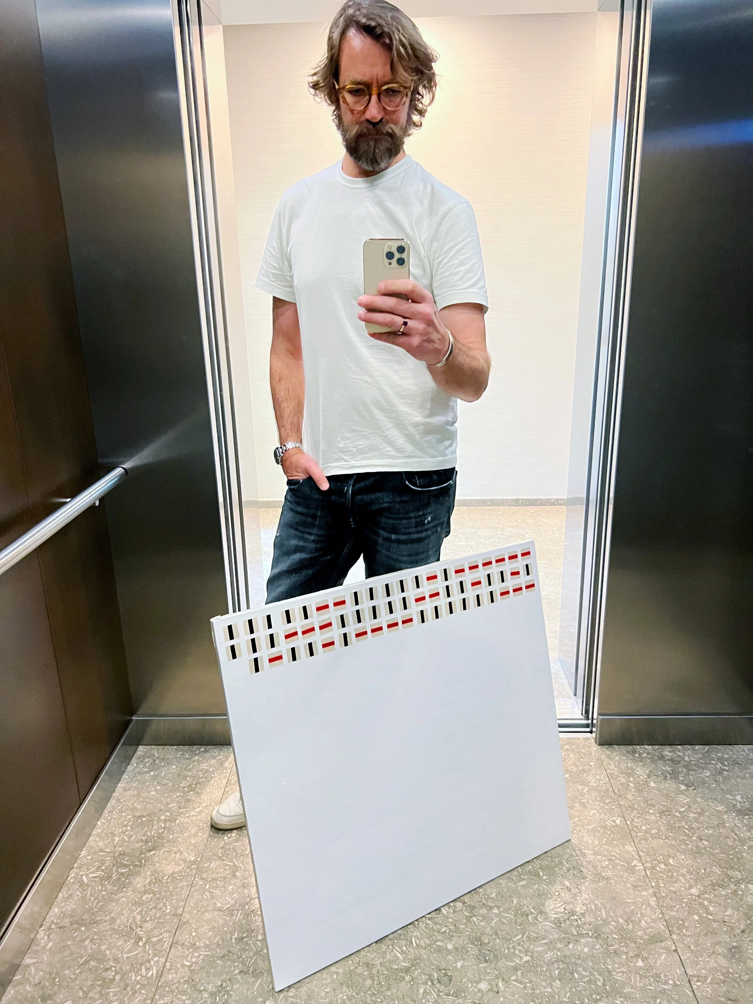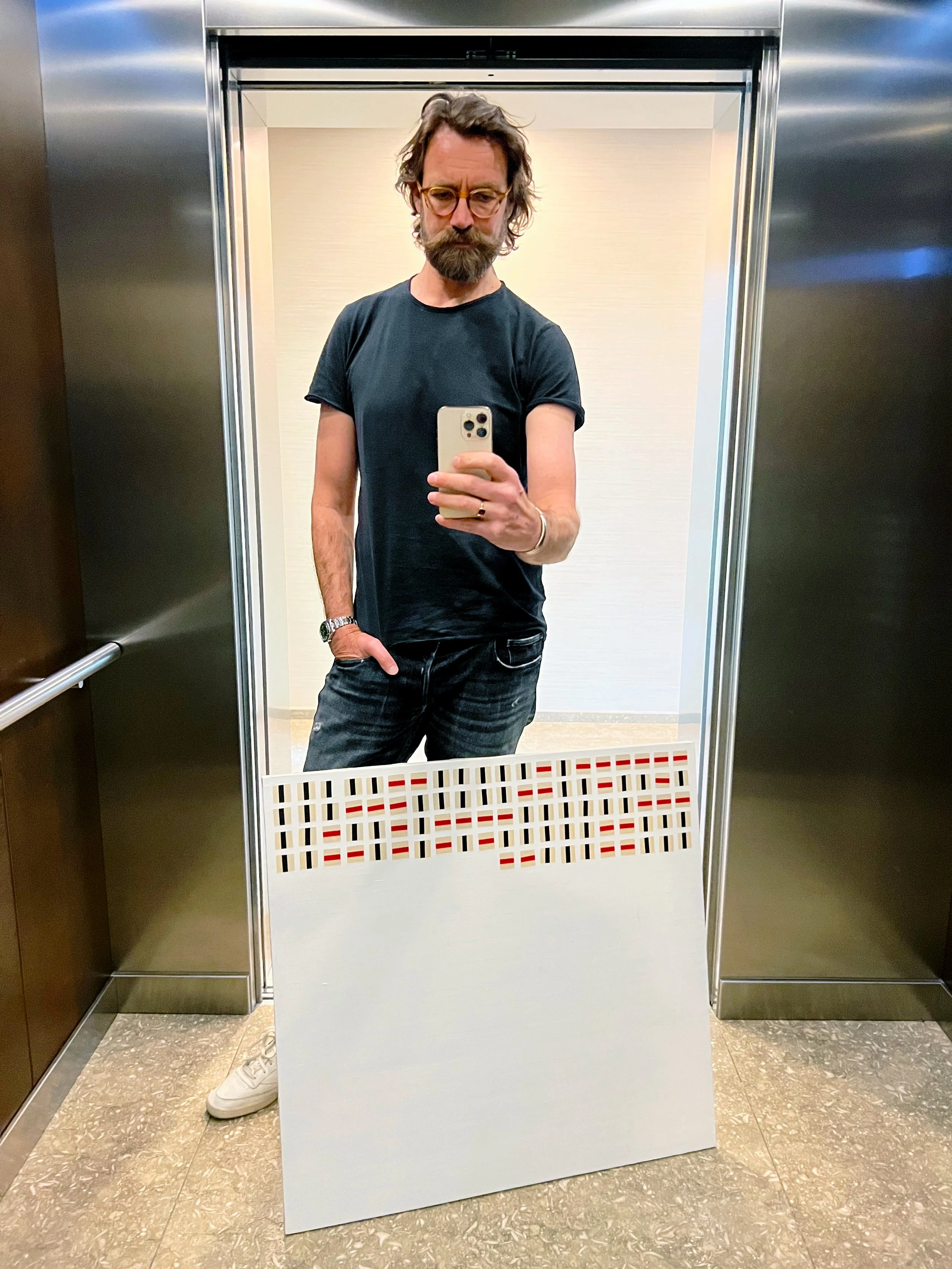 ‘Haha, I’m not sure yet. Updating the painting every month was kind of important to the process, because it forced me to take stock and gave me the time to really reflect on what was happening inside my mind. But people may be getting tired of seeing a guy with a half finished painting in an elevator, so…’ I responded.