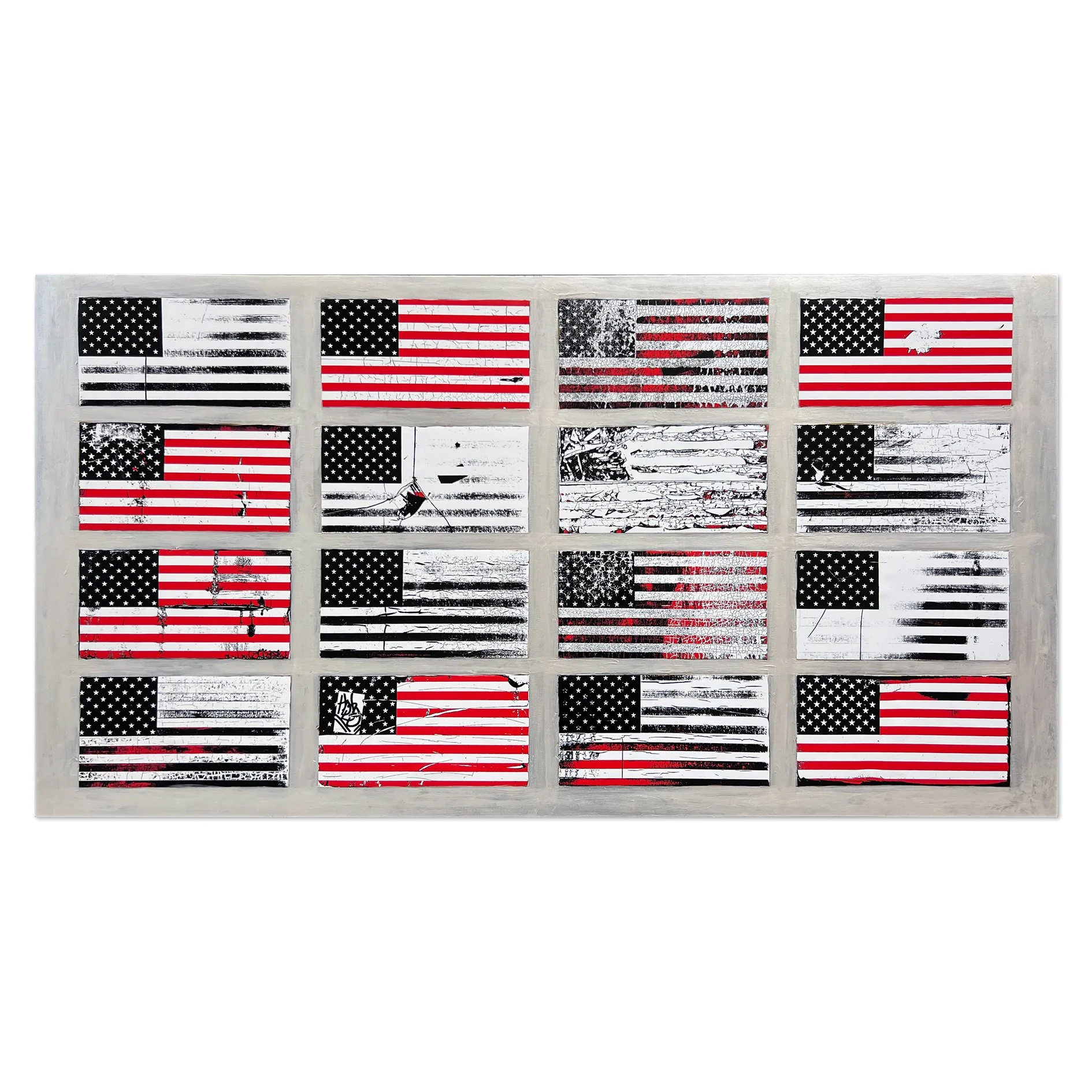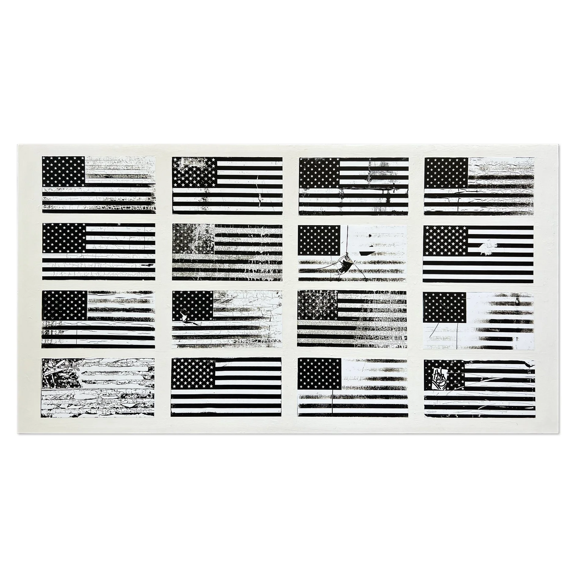 “Sixteen flags on platinum white over Andy Warhol gold”, 2023